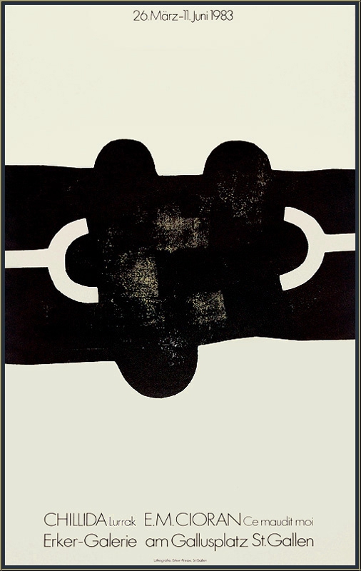 Détails :"CIORAN" - Chillida Lurrak / E. M. Cioran "Ce maudit moi" Affiche originale, réalisée pour l'exposition de l'artiste en 1983 à la Galerie Erker, Saint-Gall.