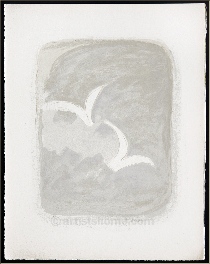 | | Lithographie originale pour « Descente aux enfers » Deux oiseaux sur fond gris - planche n° I (de IV) | Technique : | Lithographie originale en couleurs (Mourlot n° 77, Vallier n° 171) Ceci n'est pas une reproduction récente ou un retirage (estampe offset ou autres) mais la lithographie originale de 1961, selon le catalogue raisonné ! | | Année de réalisation : | 1961 | | Dimensions : | 32 x 25 cm (feuille) | | Tirage | Papier : | épreuve sur vélin de Rives avant le tirage définitif de 200 exemplaires. Ni signée, ni justifiée. | | Éditeur : | Nouveau Cercle parisien du Livre, Paris | | Imprimeur : | Mourlot, Paris | | Référence : | - Mourlot, F. Braque Lithographe, André Sauret, Monte-Carlo, 1963, pages 132-133, n° 77 - Vallier, Dora. Braque. The Complete Graphics, London 1988, page 240, n° 171 Une photocopie du catalogue raisonné pourra être fournie à l'acheteur. En plus, vous recevez une preuve d'indentité de la galerie. | | État : | Details En très bon état de conservation ! ( Cadre non fourni ) | Évaluations des clients : Il n'y a pas encore d'evaluations. Seulement les client qui ont acheté cet article et qui sont connecté peuvent l'evaluer. Votre nom est automatiquement affiché de manière anonyme, par ex. « Olivier M., France ».  *Valent pour les livraisons vers l'Allemagne payées via PayPal. En cas de paiement par virement bancaire, la livraison prendra un à trois jours de plus à partir du jour du virement en question. Pour connaître les délais de livraison pour d’autres pays et estimer le jour de livraison, rendez-vous ici |