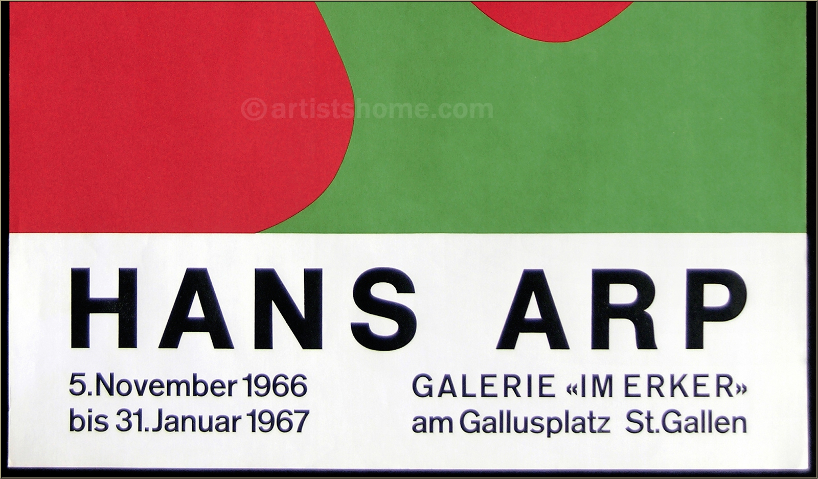 Détails :Hans Arp - Galerie « Im Erker » (Lithographie originale, Arntz 365b) Une des 500 épreuves réalisée en technique lithographique. Titre selon le catalogue raisonné (Arntz) : « Affiche St. Gallen II »