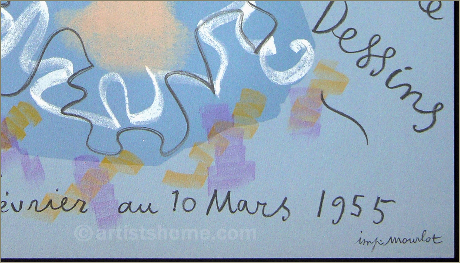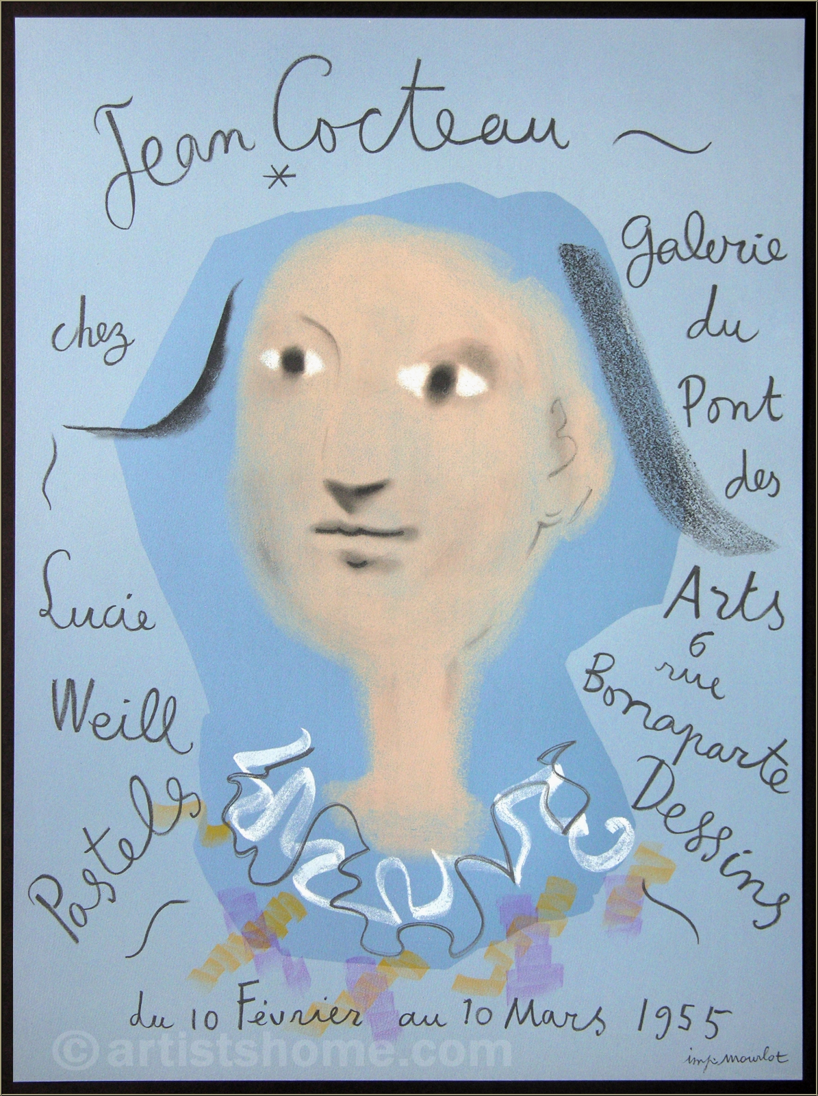 Détails :« Jean Cocteau chez Lucie Weill - Pastels et Dessins » Lithographie « Arlequin sur fond bleu » pour l'exposition à la galerie « du Pont des Arts »
