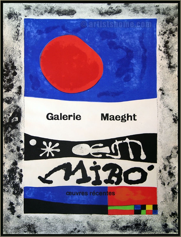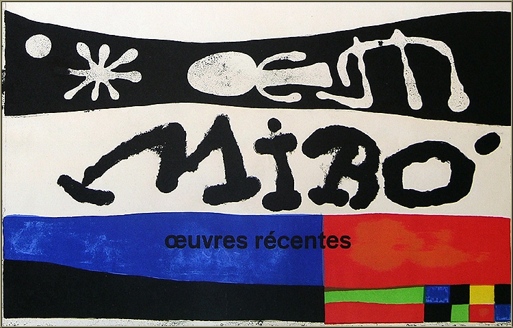 Détails :"Miro - Oeuvres récentes", 1953 Lithographie originale pour une affiche d'exposition, conçu par Miró lui-même et imprimée par Mourlot.