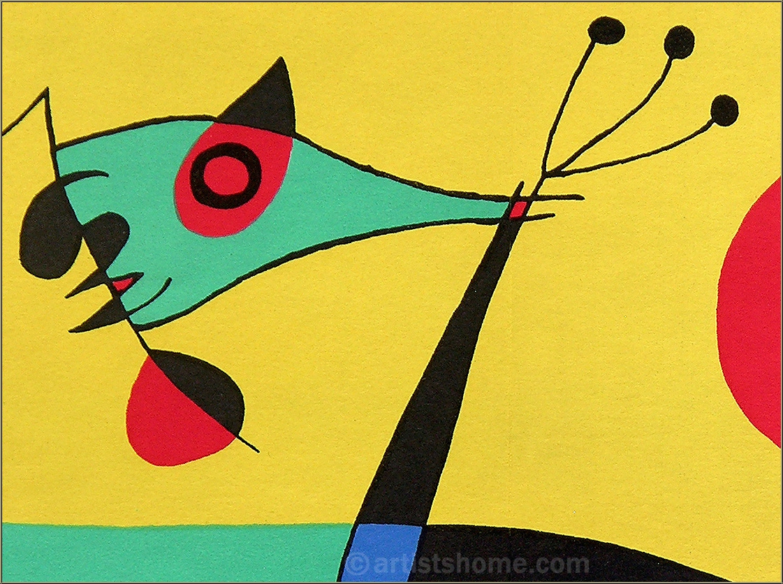 | | Sans titre ( Plume de paon ) | Technique : | Lithographie originale en couleurs Ceci n'est pas une reproduction récente ou un retirage (estampe offset ou autres) mais la lithographie originale de 1956, selon le catalogue raisonné ! | | Année de réalisation : | 1956 | | Dimensions : | 23 x 37 cm (feuille), avec pli central normal des lithographies originales publiées en doubles pages. | | Signature : | Ni signée, ni justifiée | | Éditeur : | Maeght Editeur, Paris | | Imprimeur : | Mourlot, Paris | | Référence : | Queneau, Raymond. Joan Miró - Der Lithograph II, 1953-1963, Maeght Éditeur Paris 1975, Weber, Genf, pages 80-85, n° 165 Une photocopie du catalogue raisonné sera fournie. Vous recevrez, de plus, une preuve d'identité de l'œuvre (sans prix dans le cas d'un cadeau). | | État : | Details Très belle épreuve en parfait état de conservation ! Livraison non encadré. | Évaluations des clients : Il n'y a pas encore d'evaluations. Seulement les client qui ont acheté cet article et qui sont connecté peuvent l'evaluer. Votre nom est automatiquement affiché de manière anonyme, par ex. « Olivier M., France ».  *Valent pour les livraisons vers l'Allemagne payées via PayPal. En cas de paiement par virement bancaire, la livraison prendra un à trois jours de plus à partir du jour du virement en question. Pour connaître les délais de livraison pour d’autres pays et estimer le jour de livraison, rendez-vous ici |