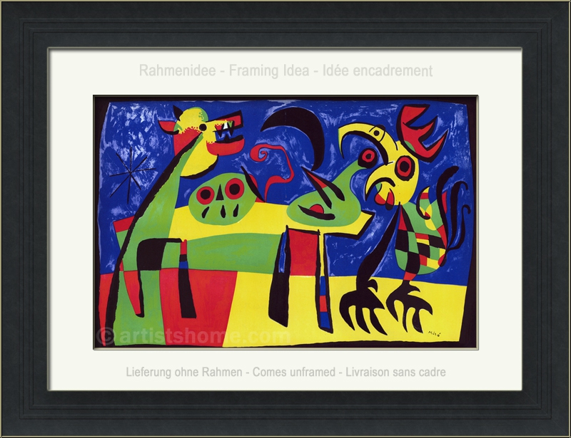 | | « Le chien aboyant à la lune » - 1952 Lithographie originale en couleurs rarissime ! Ceci n'est pas une reproduction récente ou un retirage (estampe offset ou autres) mais la lithographie originale pour la Revue Verve. | Année de réalisation: | 1952 | | Dimensions du papier: | 35,5 x 53 cm | | Tirage | Papier: | Un des exemplaires non signés de l'édition originale sur papier vélin (la lithographie a été tirée séparément sur vélin d'Arches à 80 exemplaires, numérotés et signés par l'artiste). | | Éditeur(s): | Tériade Éditeur, Paris | | Imprimeur: | Mourlot Frères, Paris | | Annotations: | Une autre lithographie et texte au verso (voir photo 3), avec pli central normal des lithographies originales publiées en doubles pages. | | Référence: | Leiris, Michel et Mourlot, Fernand. Joan Miró - Der Lithograph I, Maeght, Paris, 1972, p. 231, N° 121. Une photocopie du catalogue raisonné sera fournie. Vous recevrez, de plus, une preuve d'identité de l'œuvre (sans prix dans le cas d'un cadeau). | | État: | Details En parfait état de conservation ! Cadre non fourni. | | | Évaluations des clients : Il n'y a pas encore d'evaluations. Seulement les client qui ont acheté cet article et qui sont connecté peuvent l'evaluer. Votre nom est automatiquement affiché de manière anonyme, par ex. « Olivier M., France ».  *Valent pour les livraisons vers l'Allemagne payées via PayPal. En cas de paiement par virement bancaire, la livraison prendra un à trois jours de plus à partir du jour du virement en question. Pour connaître les délais de livraison pour d’autres pays et estimer le jour de livraison, rendez-vous ici |