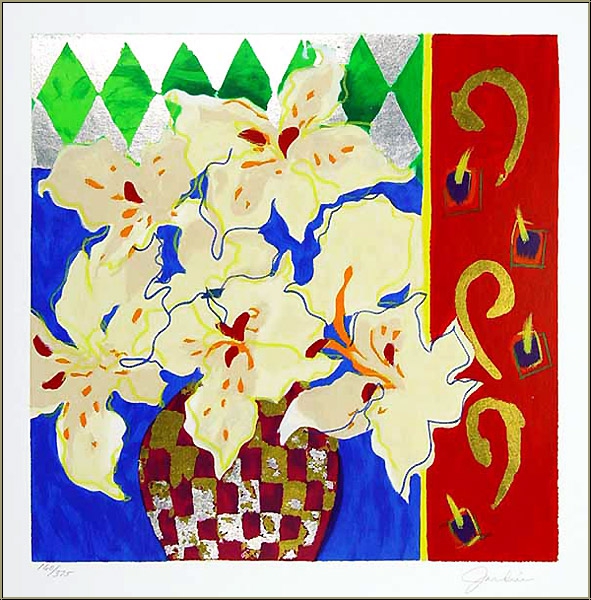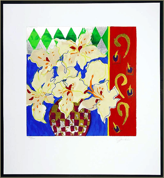Détails :"Firecracker Floral" - Fleurs crèmes Sérigraphie originale en couleurs magnifiques. Signée et numérotée au crayon par l'artiste.