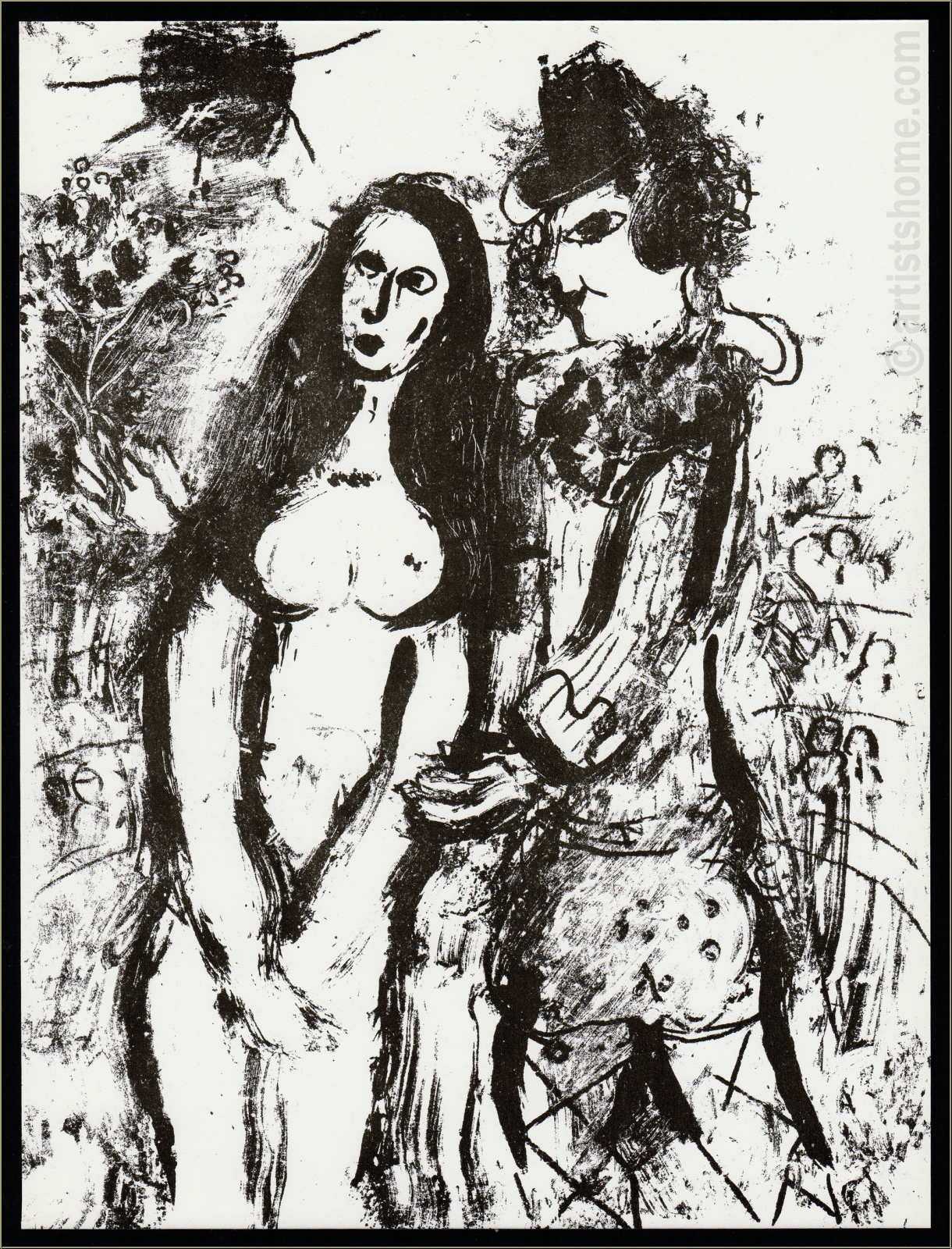 | | | Technique : | Lithographie originale en noir (Mourlot n° 394) Ceci n'est pas une copie reproduite (dupliquée sous forme de photolithographie ou autres) mais la lithographie de 1963, selon le catalogue raisonné ! | | Année de réalisation : | 1963 | | Dimensions: | 32 x 24 cm (papier = illustration) | | Tirage/Support: | Une des épreuves de l'édition limitée sur papier vélin, non signée (la lithographie a été tirée séparément sur vélin d'Arches à 150 exemplaires, numérotés et signés par l'artiste). | | Signature: | non signée, non numérotée | | Éditeur: | Éditions André Sauret, Monte-Carlo | | Imprimeur: | Mourlot, Paris | | Référence: | Mourlot, Fernand. Chagall Lithograph [III] 1962-1968, André Sauret, Monte Carlo, 1969, N° 394 Une photocopie du catalogue raisonné sera fournie. Vous recevrez, de plus, une preuve d'identité de l'œuvre (sans prix dans le cas d'un cadeau). | | État: | Details En très bon état de conservation. Livraison non encadré. | | | Évaluations des clients : Il n'y a pas encore d'evaluations. Seulement les client qui ont acheté cet article et qui sont connecté peuvent l'evaluer. Votre nom est automatiquement affiché de manière anonyme, par ex. « Olivier M., France ».  *Valent pour les livraisons vers l'Allemagne payées via PayPal. En cas de paiement par virement bancaire, la livraison prendra un à trois jours de plus à partir du jour du virement en question. Pour connaître les délais de livraison pour d’autres pays et estimer le jour de livraison, rendez-vous ici |