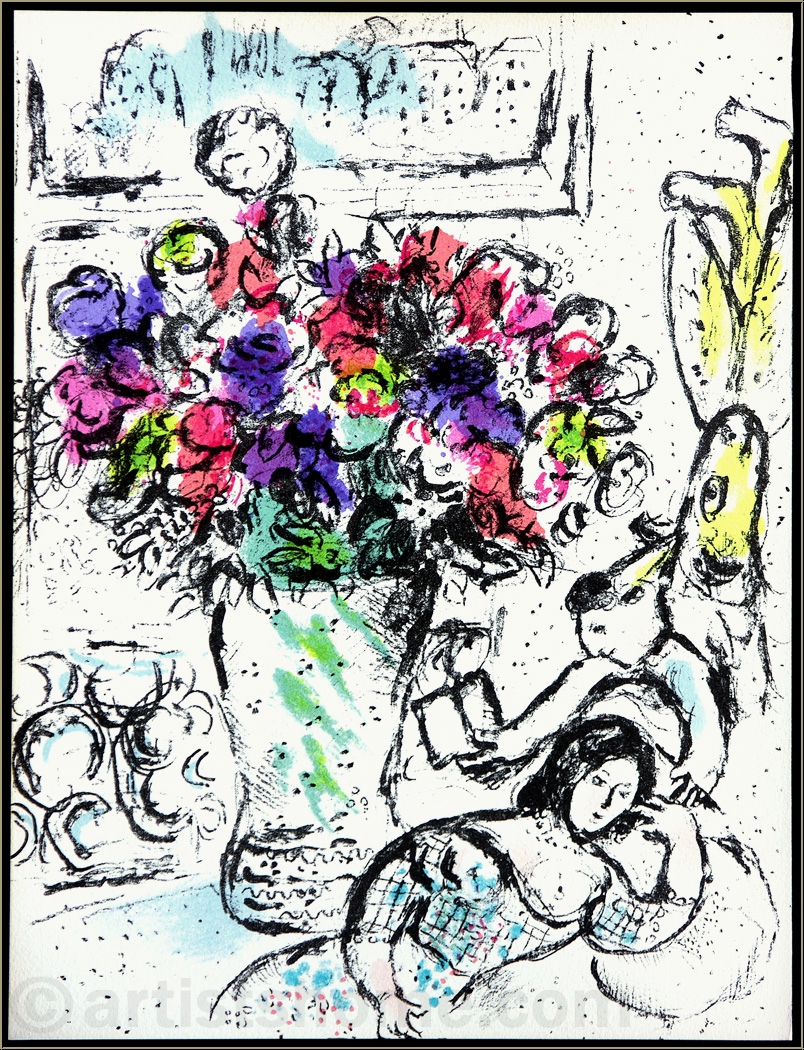 | | « Les Anémones » Lithographie originale en couleurs de Marc Chagall, réalisée pour « Chagall Lithographe IV ». Ceci n'est pas une reproduction récente ou un retirage (quadrichromie ou grano lithographie d'une « édition limitée ») mais la lithographie originale selon le catalogue raisonné ! | Dimensions: | 32 x 24 cm (papier = illustration) | | Tirage/Support: | Une des épreuves de l'édition limitée sur papier vélin, non signée (la lithographie a été tirée séparément sur Japon nacré (54 x 40,5 cm) à 50 exemplaires, numérotées et signées par l'artiste). | | Signature: | non signée, non numérotée | | Éditeur: | Éditions André Sauret, Monte-Carlo | | Référence: | Sorlier, Charles. Chagall Lithographe [V] 1974-1979. André Sauret, Monte-Carlo 1984, N° 730 Une photocopie du catalogue raisonné sera fournie. Vous recevrez, de plus, une preuve d'identité de l'œuvre (sans prix dans le cas d'un cadeau). | | État: | Details En parfait état de conservation. Cadre non fourni. | | | Évaluations des clients : Il n'y a pas encore d'evaluations. Seulement les client qui ont acheté cet article et qui sont connecté peuvent l'evaluer. Votre nom est automatiquement affiché de manière anonyme, par ex. « Olivier M., France ».  *Valent pour les livraisons vers l'Allemagne payées via PayPal. En cas de paiement par virement bancaire, la livraison prendra un à trois jours de plus à partir du jour du virement en question. Pour connaître les délais de livraison pour d’autres pays et estimer le jour de livraison, rendez-vous ici |