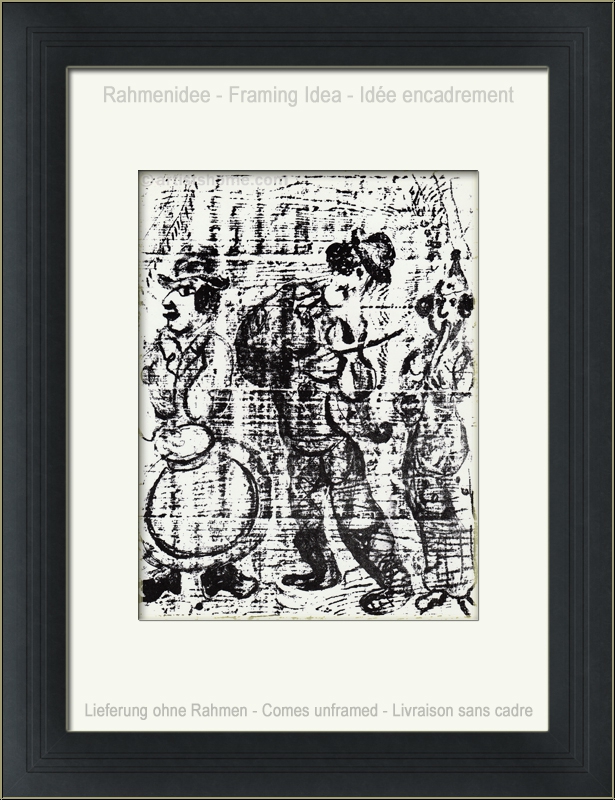| Technique : | Lithographie originale en noir Ceci n'est pas une copie reproduite (dupliquée sous forme de photolithographie ou autres) mais la lithographie de 1963, selon le catalogue raisonné ! | | Année de réalisation : | 1963 | | Dimensions: | 32 x 24 cm (papier = illustration) | | Tirage/Support: | Une des épreuves de l'édition limitée sur papier vélin, non signée (la lithographie a été tirée séparément sur vélin d'Arches à 150 exemplaires, numérotés et signés par l'artiste). | | Signature: | non signée, non numérotée | | Éditeur: | Éditions André Sauret, Monte-Carlo | | Imprimeur: | Mourlot, Paris | | Référence: | Mourlot, Fernand. Chagall Lithograph [III] 1962-1968, André Sauret, Monte Carlo, 1969, n° 396 Une photocopie du catalogue raisonné pourra être fournie à l'acheteur. En plus, vous recevez une preuve d'indentité de la galerie. | | État: | Details En parfait état de conservation ! Livraison sans cadre. | | | Évaluations des clients : Il n'y a pas encore d'evaluations. Seulement les client qui ont acheté cet article et qui sont connecté peuvent l'evaluer. Votre nom est automatiquement affiché de manière anonyme, par ex. « Olivier M., France ».  *Valent pour les livraisons vers l'Allemagne payées via PayPal. En cas de paiement par virement bancaire, la livraison prendra un à trois jours de plus à partir du jour du virement en question. Pour connaître les délais de livraison pour d’autres pays et estimer le jour de livraison, rendez-vous ici |