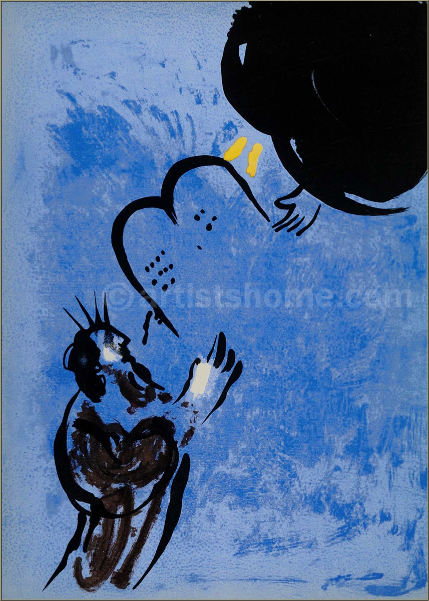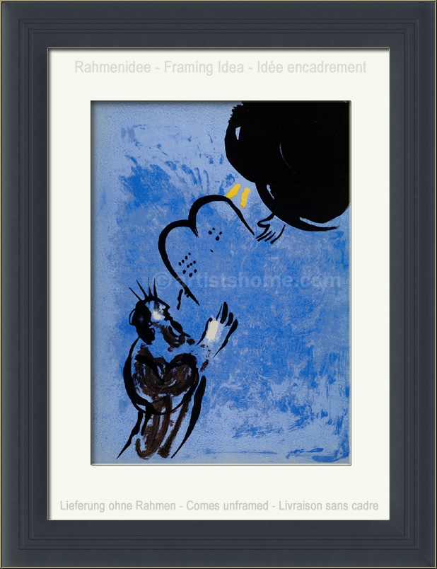 | | « Moîse reçoit les Tablets de la Loi » Lithographie originale en couleurs de Marc Chagall pour « La Bible » C'est ne pas une reproduction récente ou un retirage (quadrichromie ou grano lithographie d'une « édition limitée ») mais la lithographie originale de 1956, selon les catalogues raisonné. | Année de réalisation : | 1956 | | Tirage : | Une des 6500 épreuves de l'édition limitée sur papier vélin, non signée (la lithographie a été tirée séparément sur vélin d'Arches à 75 exemplaires, numérotées et signées). | | Dimensions : | 35 x 26 cm (feuille / illustration) | | Éditeur : | Éditions de la Revue Verve, Tériade, Paris | | Imprimeur : | Mourlot, Paris | | Annotations : | Une autre lithographie originale au verso (Mourlot N° 128); Référence biblique: Ex. 19; Ex. 33. | | Références : | Cain, J., et Mourlot, Fernand. Chagall Lithograph [I], André Sauret, Monte Carlo 1960, p. 149-160, n° 123 + 128 Une photocopie du catalogue raisonné sera fournie. Vous recevrez, de plus, une preuve d'identité de l'œuvre (sans prix dans le cas d'un cadeau). | | État : | Details En très bon état de conservation. Livraison non encadré. | | | Évaluations des clients : Il n'y a pas encore d'evaluations. Seulement les client qui ont acheté cet article et qui sont connecté peuvent l'evaluer. Votre nom est automatiquement affiché de manière anonyme, par ex. « Olivier M., France ».  *Valent pour les livraisons vers l'Allemagne payées via PayPal. En cas de paiement par virement bancaire, la livraison prendra un à trois jours de plus à partir du jour du virement en question. Pour connaître les délais de livraison pour d’autres pays et estimer le jour de livraison, rendez-vous ici |