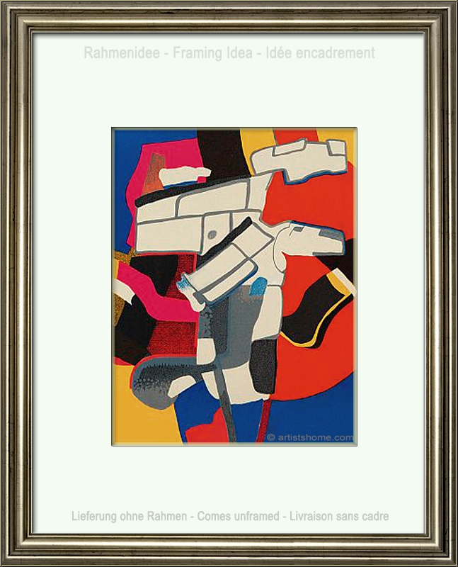 | | | « Bougri » | | Lithographie originale en couleurs de Maurice Estève, imprimée sur Arches par Mourlot. | | Dimensions: | 31 x 24 cm (papier) | | Tirage: | Une des épreuves non signées. La lithographie a été tirée séparément sur vélin d'Arches avec grandes marges à 70 exemplaires, numérotées et signées | | Éditeur: | Société Internat. d'Art XXè siècle, Paris | | Imprimeur: | Mourlot, Paris | | Annotations: | Ceci n'est pas une reproduction récente (retirage) mais la lithographie originale de 1974 ! | Référence/ Catalogue raisonné: | Prudhomme-Estève, M. u. Moestrup, H., Estève, Maurice u . Vallier, Dora. Maurice Estève - L'oeuvre Gravé, Forlaget Cordelia, 1986, p. 105, N° 76 Une photocopie du catalogue raisonné sera fournie. Vous recevrez, de plus, une preuve d'identité de l'œuvre (sans prix dans le cas d'un cadeau). | | État: | Details En parfait état de conservation ! Livraison non encadré. | | Évaluations des clients : Il n'y a pas encore d'evaluations. Seulement les client qui ont acheté cet article et qui sont connecté peuvent l'evaluer. Votre nom est automatiquement affiché de manière anonyme, par ex. « Olivier M., France ».  *Valent pour les livraisons vers l'Allemagne payées via PayPal. En cas de paiement par virement bancaire, la livraison prendra un à trois jours de plus à partir du jour du virement en question. Pour connaître les délais de livraison pour d’autres pays et estimer le jour de livraison, rendez-vous ici |