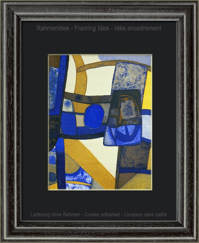 | | « Alalito » Un des 800 exemplaires de l'édition limitée sur papier Arches pour « Souvenirs et portraits d'artistes » | Technique : | Lithographie originale en couleurs, imprimée par Mourlot. Texte au verso : « Estève - Alalito - Lithographie originale Ceci n'est pas une reproduction photomécanique (impression offset), mais la lithographie originale, selon le catalogue raisonné ! | | Année de réalisation : | 1972 | | Formats : | 32,5 x 25 cm (feuille) | | Tirage | Papier : | Une des 800 épreuves de l'édition limitée sur papier Arches, non signée | | Éditeur : | Alain C. Mazo, Paris u. Léon Amiel, New York, 1972 | | Imprimeur : | Mourlot, Paris | | Référence : | Prudhomme-Estève, M. and Moestrup, H., Estève, Maurice and Vallier, Dora. Maurice Estève - L'Oeuvre Gravé, Forlaget Cordelia, 1986, page 82, no. 54, cf. https://mourlot.com / Livres de Fernand Mourlot Une photocopie du catalogue raisonné sera fournie. Vous recevrez, de plus, une preuve d'identité de l'œuvre (sans prix dans le cas d'un cadeau). | | État : | Details En parfait état de conservation ! Cadre non fourni. | Évaluations des clients : Il n'y a pas encore d'evaluations. Seulement les client qui ont acheté cet article et qui sont connecté peuvent l'evaluer. Votre nom est automatiquement affiché de manière anonyme, par ex. « Olivier M., France ».  *Valent pour les livraisons vers l'Allemagne payées via PayPal. En cas de paiement par virement bancaire, la livraison prendra un à trois jours de plus à partir du jour du virement en question. Pour connaître les délais de livraison pour d’autres pays et estimer le jour de livraison, rendez-vous ici |