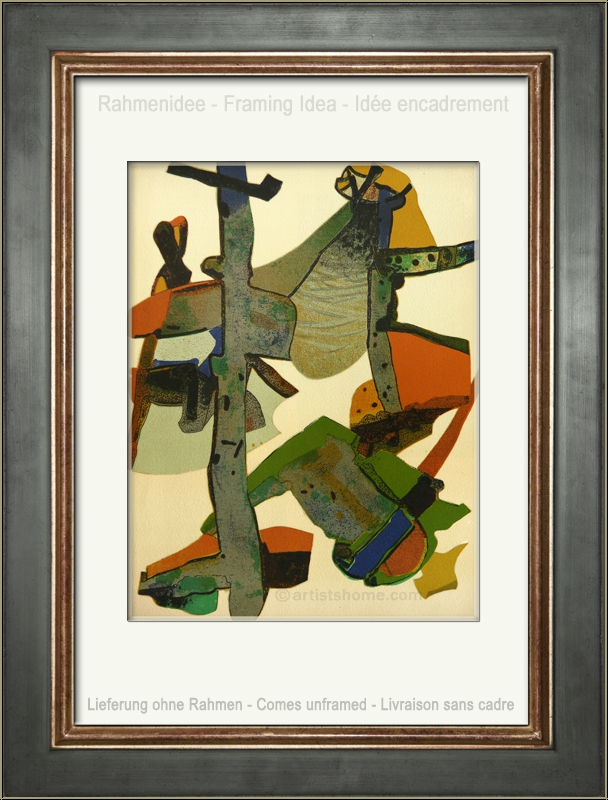 | | Lithographie originale en couleurs de Maurice Estève, imprimée sur Arches par Mourlot. | | Dimensions: | 31 x 24 cm (papier) | | Tirage: | Une des épreuves non signées. La lithographie a été tirée séparément sur vélin d'Arches avec grandes marges à 70 exemplaires, numérotées et signées | | Éditeur: | Société Internat. d'Art XXè siècle, Paris | | Imprimeur: | Mourlot, Paris | | Annotations: | Ceci n'est pas une reproduction récente (retirage) mais la lithographie originale! | Référence/ Catalogue raisonné: | Prudhomme-Estève, M. u. Moestrup, H., Estève, Maurice u . Vallier, Dora. Maurice Estève - L'oeuvre Gravé, Forlaget Cordelia, 1986, p. 104, N° 75 Une photocopie du catalogue raisonné sera fournie. Vous recevrez, de plus, une preuve d'identité de l'œuvre (sans prix dans le cas d'un cadeau). | | État: | Details En parfait état de conservation. Livraison non encadré. | | Évaluations des clients : Il n'y a pas encore d'evaluations. Seulement les client qui ont acheté cet article et qui sont connecté peuvent l'evaluer. Votre nom est automatiquement affiché de manière anonyme, par ex. « Olivier M., France ».  *Valent pour les livraisons vers l'Allemagne payées via PayPal. En cas de paiement par virement bancaire, la livraison prendra un à trois jours de plus à partir du jour du virement en question. Pour connaître les délais de livraison pour d’autres pays et estimer le jour de livraison, rendez-vous ici |