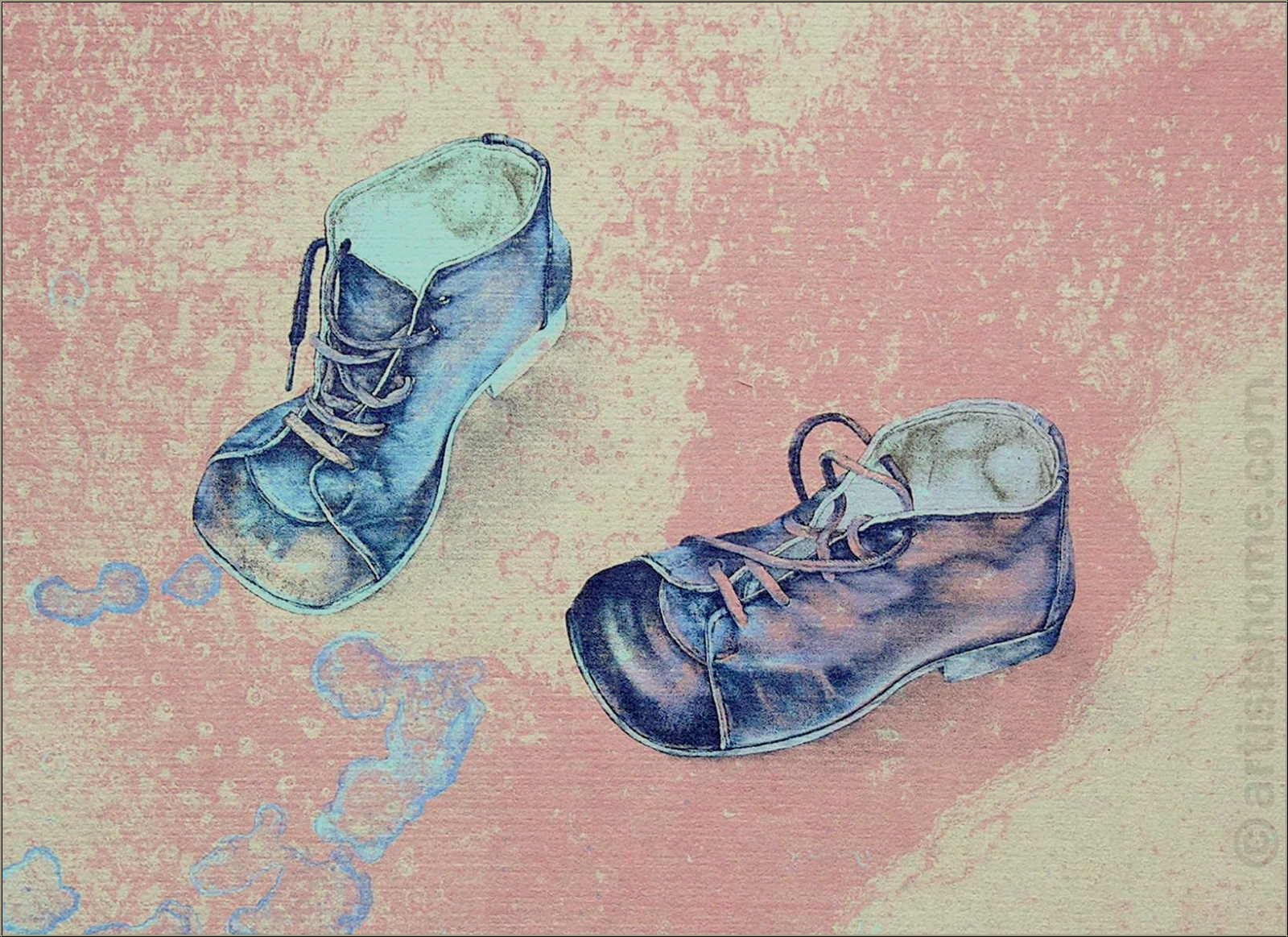 Lithographie signée du peintre allemand, imprimée sur papier à la main, paire de chaussures pour enfants