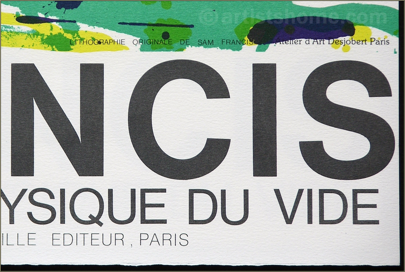 Détails :« Sam Francis » Lithographie originale Affiche réalisée en lithographie originale, éditée par Francis Delille pour la promotion d'une monographie de l'auteur Michel Waldberg consacrée à le peintre américain.