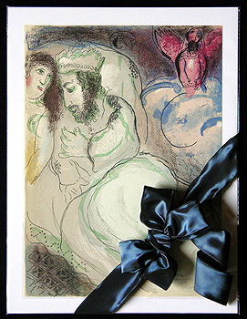 Nous emballons toutes les feuilles jusqu'à la taille « M » (la feuille la plus longue mesure 39 cm, citons par ex. toutes les lithographies originales de la « Bible » de Marc Chagall ou tous les numéros de la revue « Derrière le miroir ») de manière à ce qu'elles soient prêtes à offrir : la feuille / brochure est fixée sur un passe-partout en carton blanc sans acide à l'aide de coins translucides dans les angles puis glissée dans une enveloppe spéciale transparente. Les preuves d'identité correspondantes sont apposées sur la partie arrière. | Cette méthode vous permet d'examiner la feuille à sa réception et de l'emballer ensuite selon vos souhaits avec du papier et un ruban. Ça y est : votre cadeau est prêt ! Nous veillons aussi à sécuriser la feuille pendant son acheminement : la feuille vous est livrée entre deux plaques solides que vous pourrez réutiliser pour la réexpédition. Matériel de décoration non fourni. |